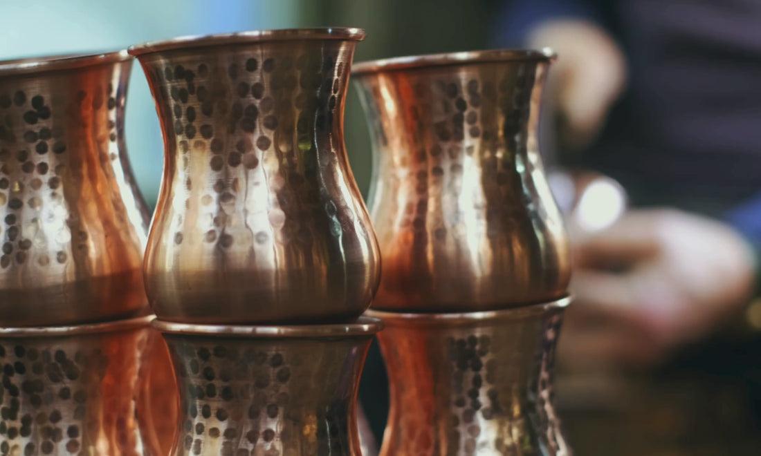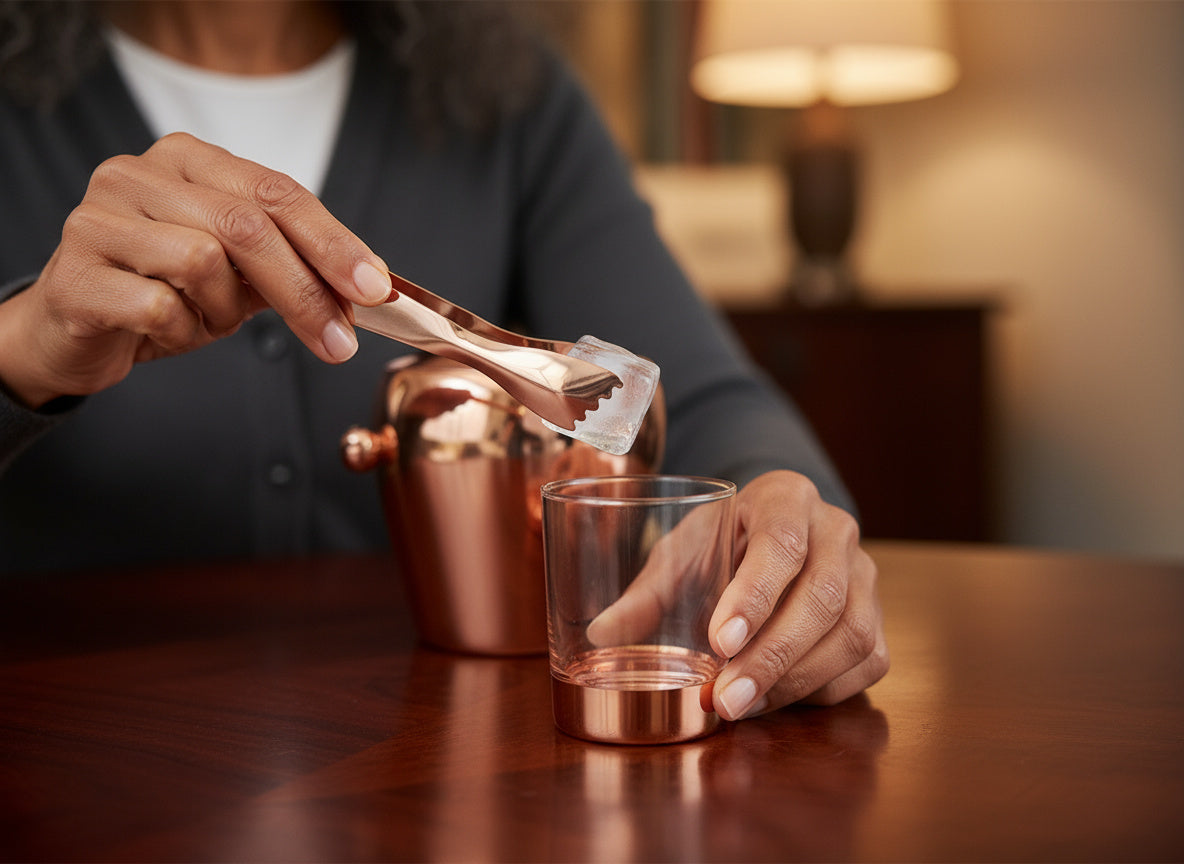 Set De Whiskey Cobre 4 Vasos + Balde De Hielo + Pinzas